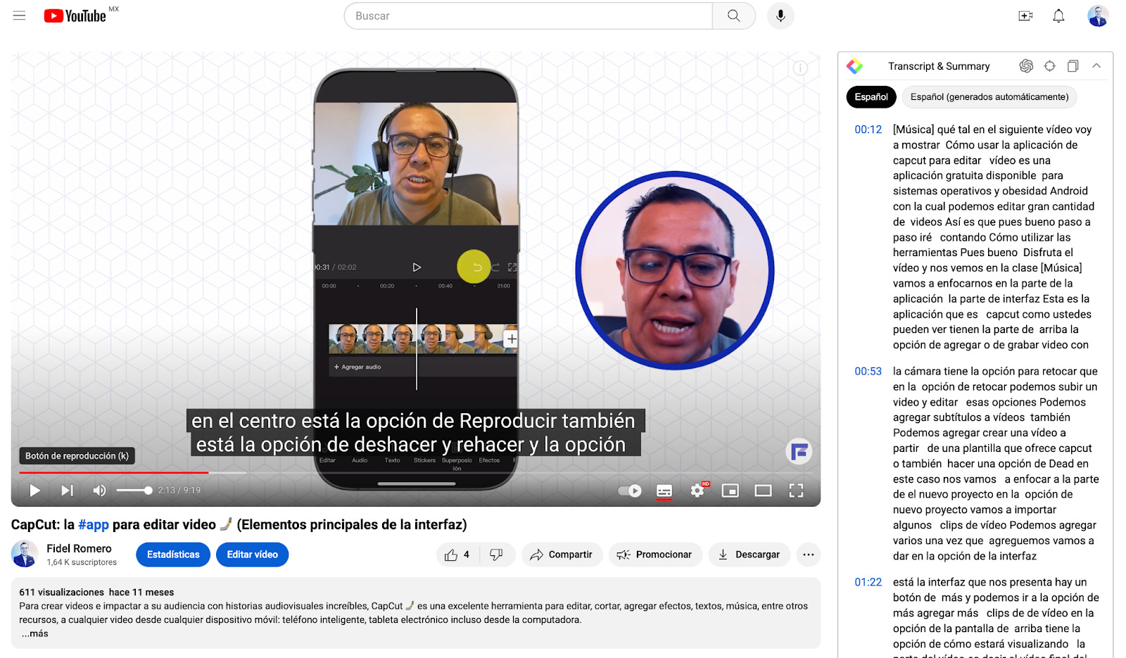 Se trata de una extensión gratuita para Google Chrome y Safari que es fácil de instalar y utilizar. Al activarla en tu navegador, aparecerá un bloque titulado "Transcrip & Summary" en el lado derecho cada vez que visites un video en YouTube, donde podrás ver la transcripción del video