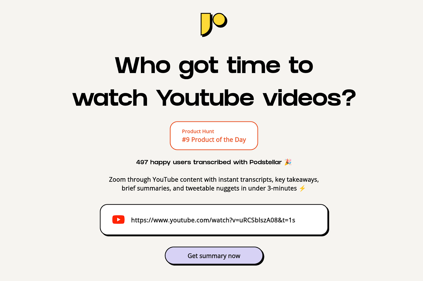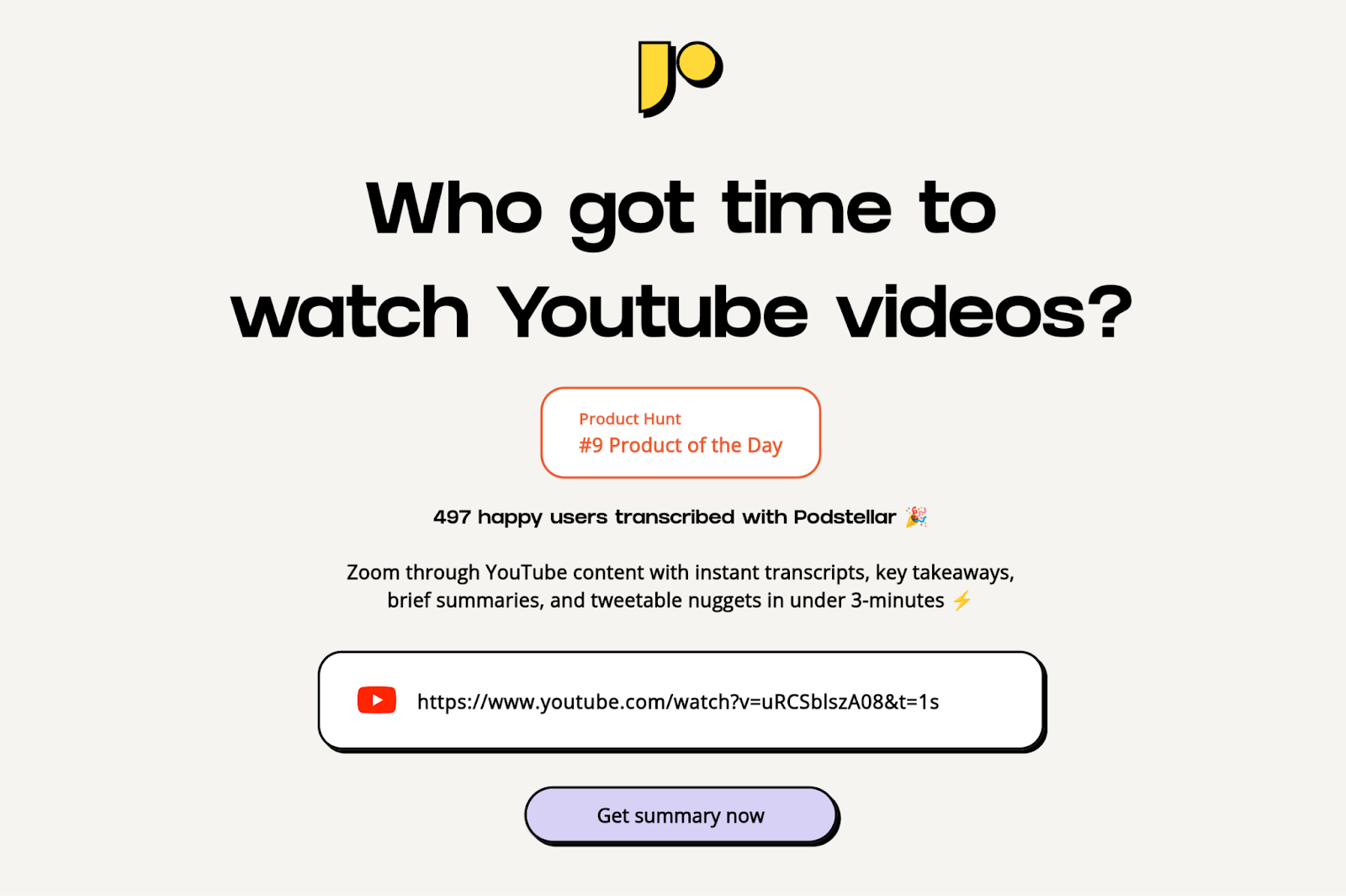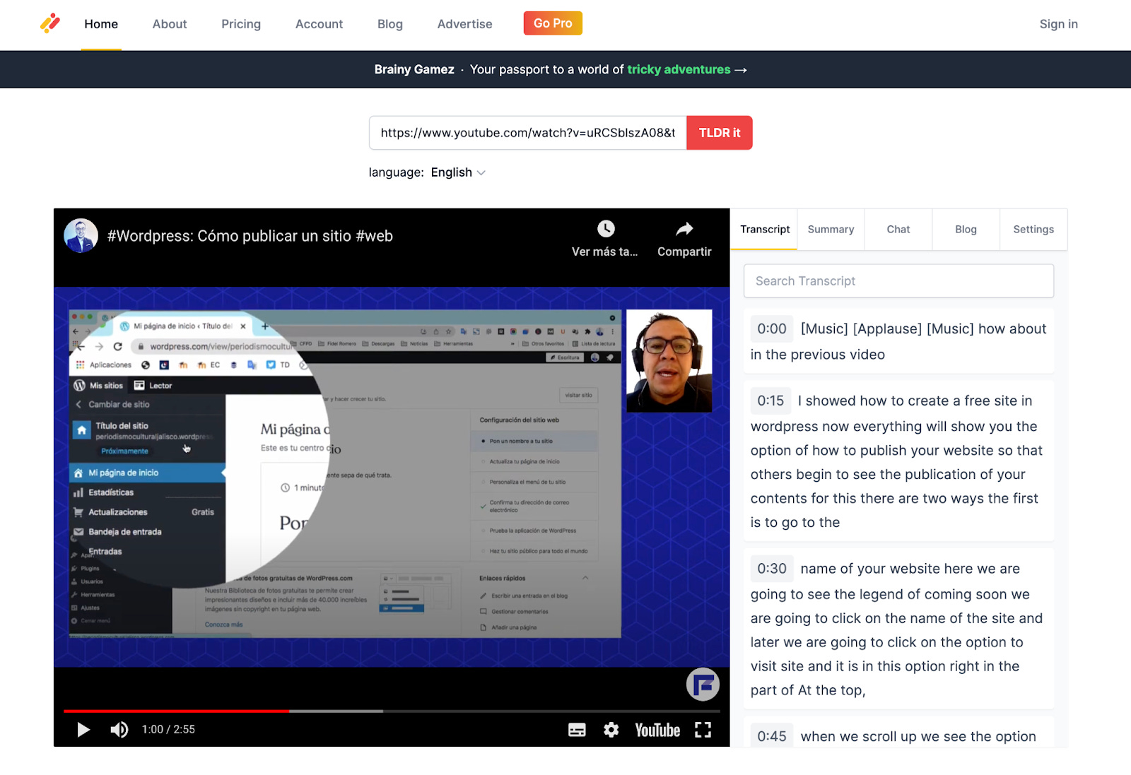 you-tldr.com fue lanzado en el 2019 por Bilal Tahir y Hamza Tahir, y ahora presenta una nueva versión 2.0 con integraciones de inteligencia artificial que permiten transcribir videos de YouTube en cuestión de segundos. Simplemente ingresa la URL del video, selecciona el idioma y el texto aparecerá organizado por bloques de segundos y minutos.