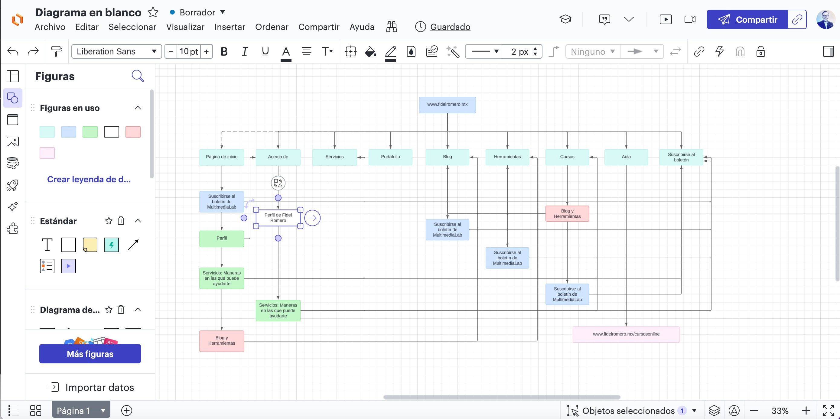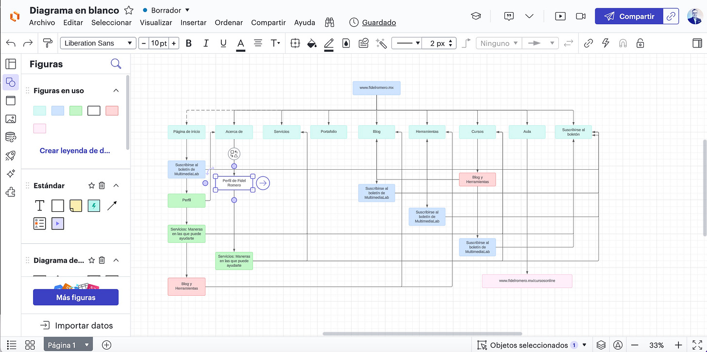Cuando colaboro con emprendedores y organizaciones para diseñar un sitio web, utilizar un diagrama me resulta fundamental para identificar los requisitos y funcionalidades necesarias, así como para visualizar la estructura y jerarquía de las páginas. A continuación, detallo los pasos para utilizar Lucidchart y crear este tipo de diagramas: